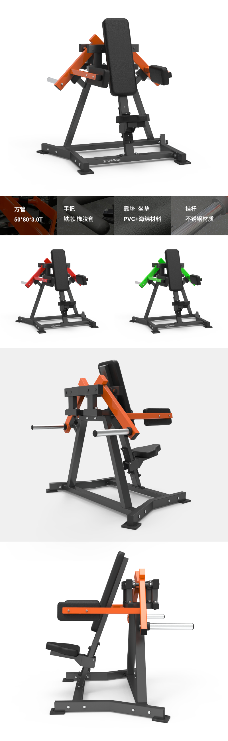 BFT-E06 BFT-E06 坐式提肩訓練器 尺寸: 1135×1345×1535mm 凈重:180kgs 主管:方管50*80*3.0T 手把:φ25 鐵芯+TPV橡膠套 靠墊/坐墊:PVC+海綿材料 掛桿:不銹鋼材質 最大承重:300kg 獲取報價