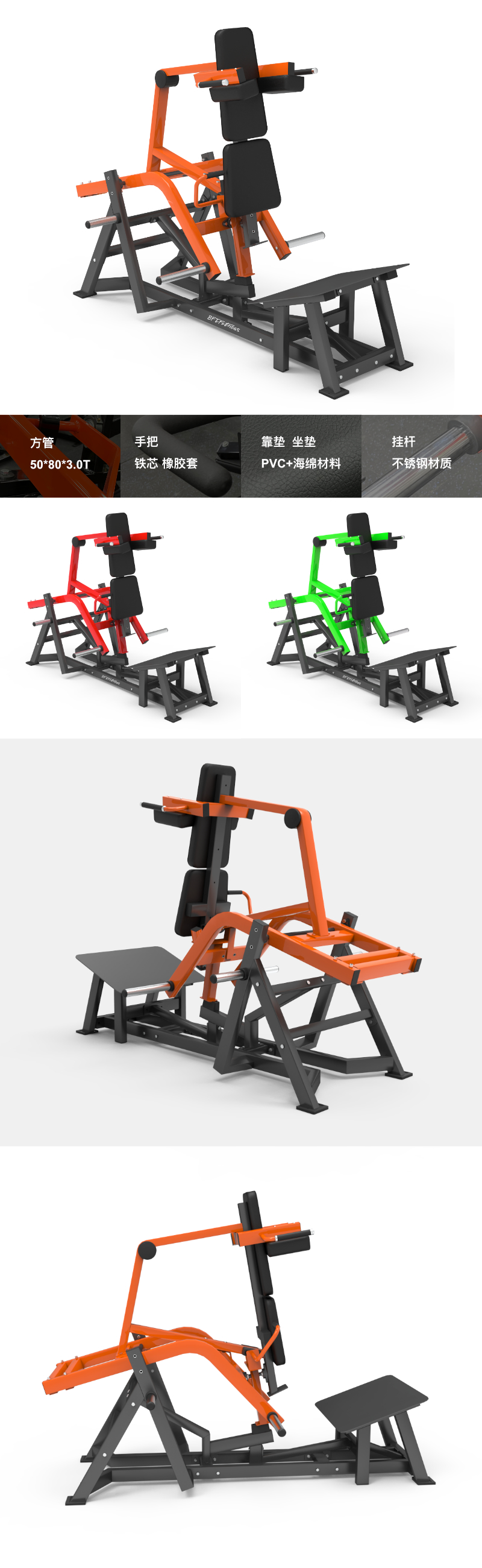 BFT-E12 BFT-E12 V形深蹲機 尺寸:2450x1500x1850mm 凈重:206kgs 主管:方管50*80*3.0T 手把:φ25 鐵芯+TPV橡膠套 靠墊/坐墊:PVC+海綿材料 掛桿:不銹鋼材質 最大承重:300kg 獲取報價