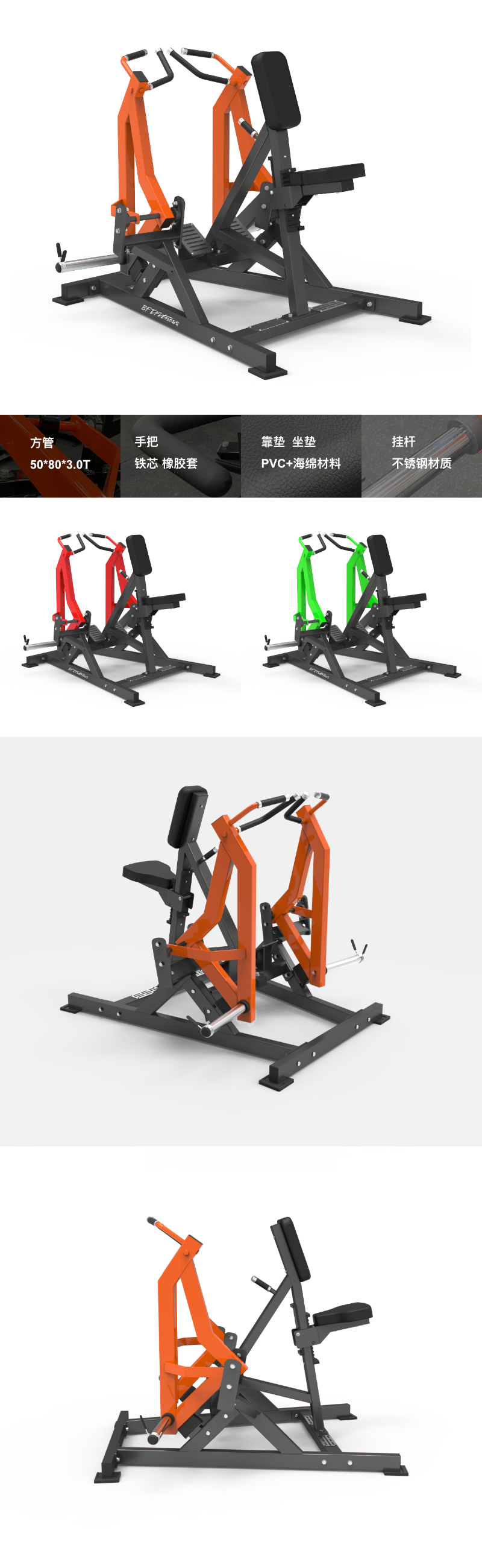 BFT-E14 BFT-E14 坐式低位拉背訓練器 尺寸:1530x1560x1350mm 凈重:128kgs 主管:方管50*80*3.0T 手把:φ25 鐵芯+TPV橡膠套 靠墊/坐墊:PVC+海綿材料 掛桿:不銹鋼材質 最大承重:300kg 獲取報價