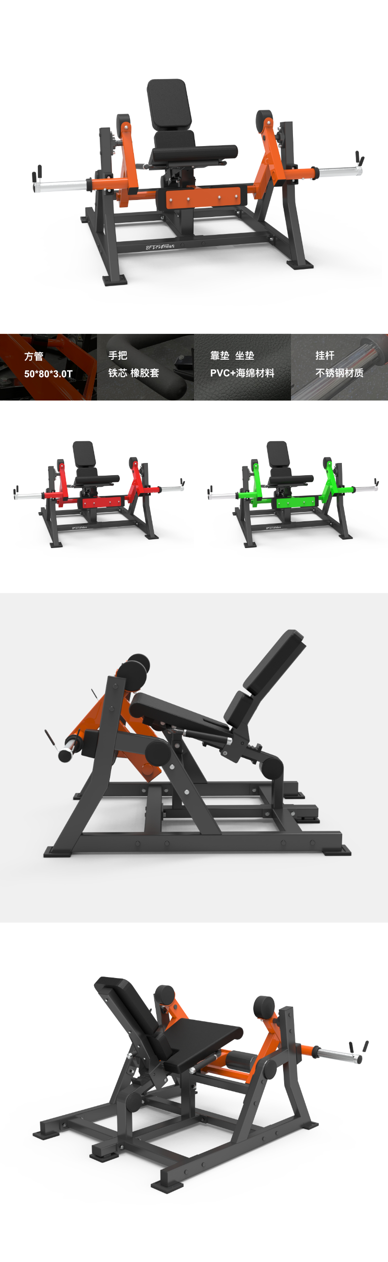 BFT-E24 BFT-E24 大腿伸展 尺寸:1845x1300x1057mm 凈重:134kgs 主管:方管50*80*3.0T 手把:φ25 鐵芯+TPV橡膠套 靠墊/坐墊:PVC+海綿材料 掛桿:不銹鋼材質 最大承重:300kg 獲取報價