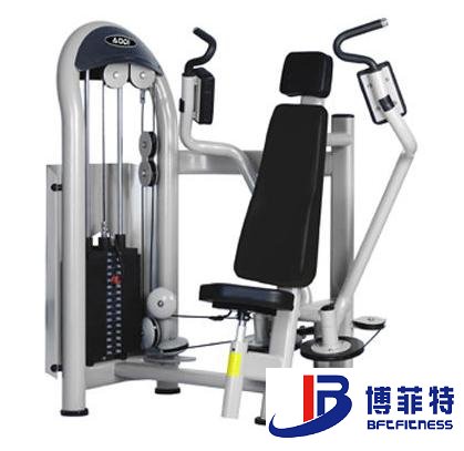 進(jìn)行飛鳥夾胸時所使用的一種機(jī)械。主要鍛煉胸大肌和胸部中縫為主的胸部諸肌,初級使用者多會背部緊貼座椅,以便用力;較有經(jīng)驗的用者則會背部離椅,同時鍛煉腹部肌肉。