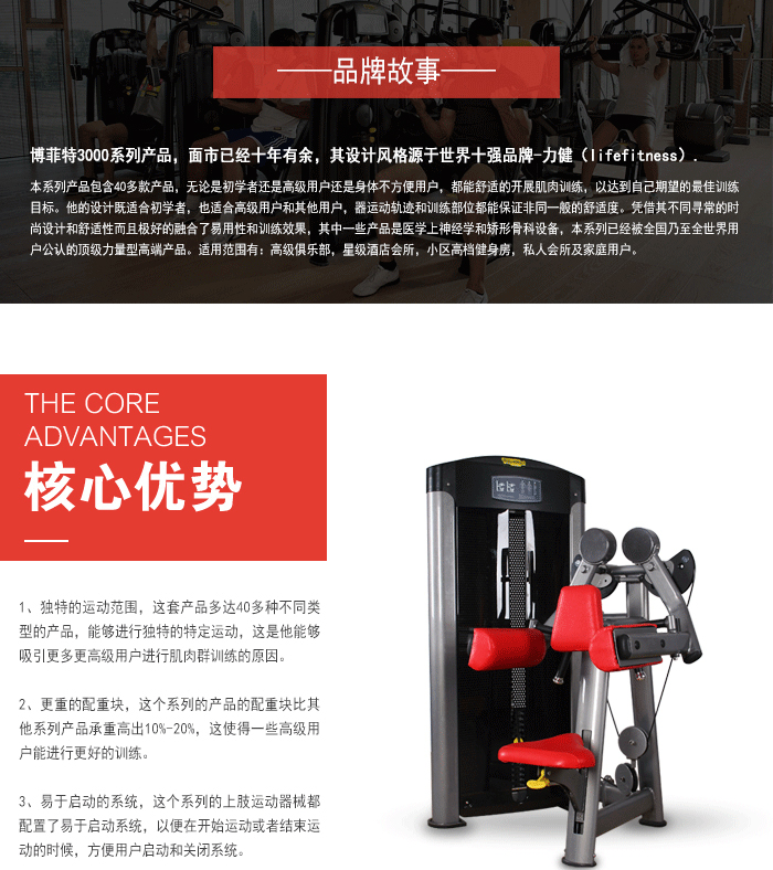 BFT3003 提肩訓練器 肩部推舉訓練器 推舉訓練器 型號:BFT3003 價格:¥9960 產品占地尺寸: 1150*1270*1640mm 毛重/凈重: 206/195kg 標準配重/最大配重: 70/90kg 鍛煉部位:三角肌中束。 主要鍛煉:斜方肌中。 次要鍛煉:斜方肌上 獲取報價