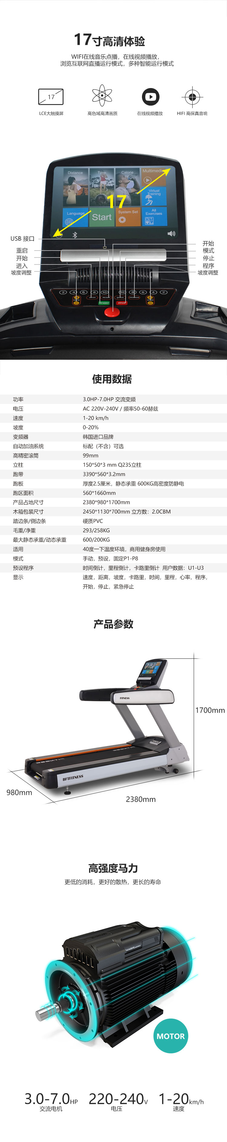 加油系統:手動或者自動加油系統; 跑板厚度:25mm 厚的高強度防靜電跑板; 上邊踏板和側邊踏板:高強度加硬PVC材質,立柱: Q235鋼材; 高加強版的整體鋼架結構提高整體跑步機穩定性