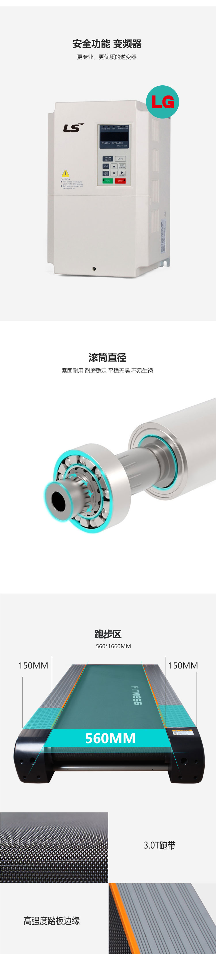 跑區面積/跑帶厚度: 1660×580/3.2mm